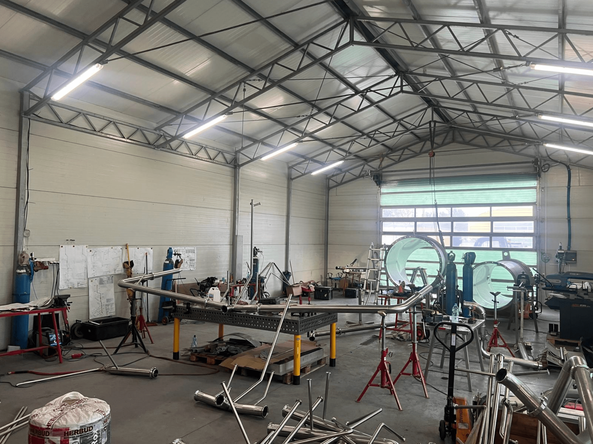Sercem naszej działalności jest w pełni wyposażona hala produkcyjna. To tutaj, w kontrolowanych warunkach warsztatowych, realizujemy kluczowe etapy produkcji, zanim elementy trafią na plac budowy. Dzięki własnemu zapleczu jesteśmy niezależni od warunków atmosferycznych i możemy zagwarantować najwyższą sterylność procesów spawalniczych, co jest kluczowe przy obróbce stali szlachetnych.